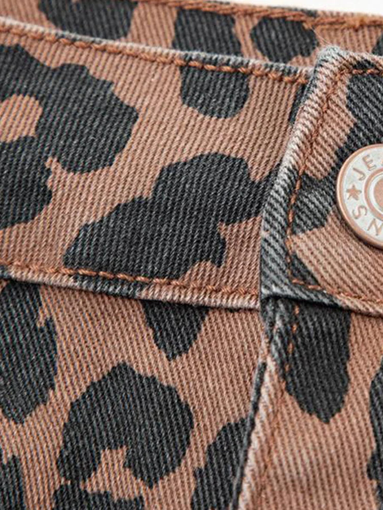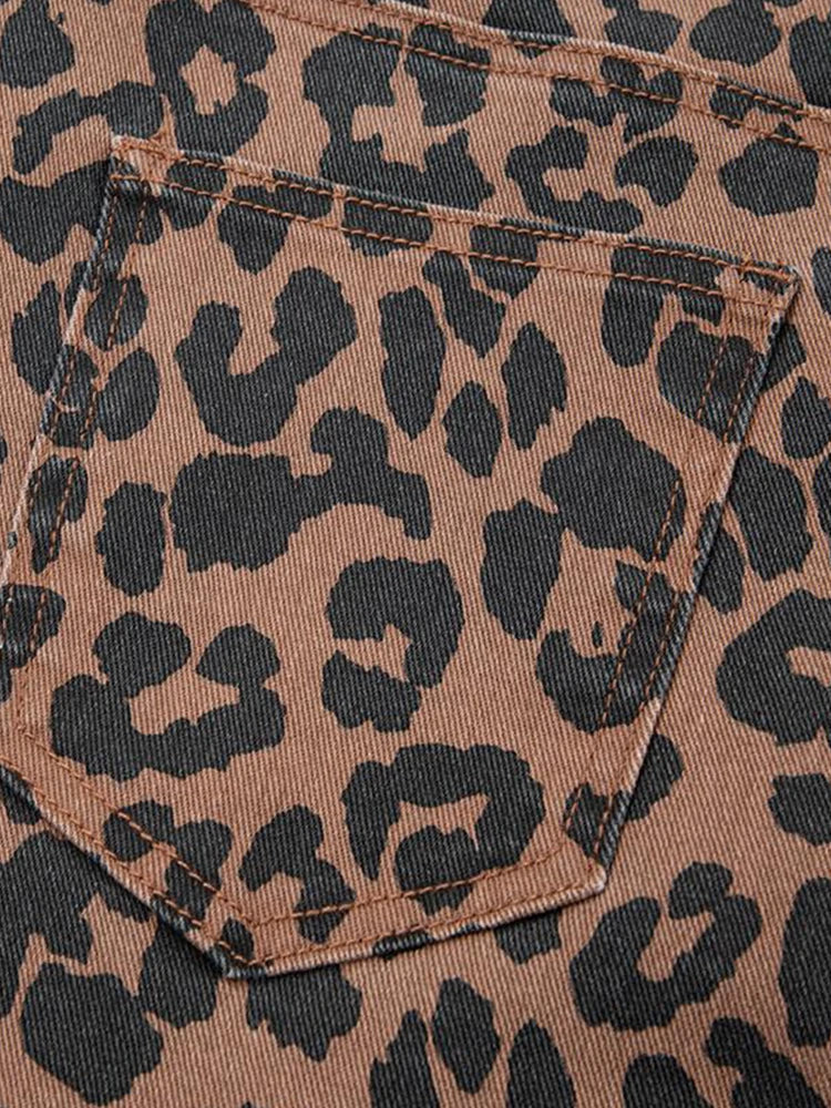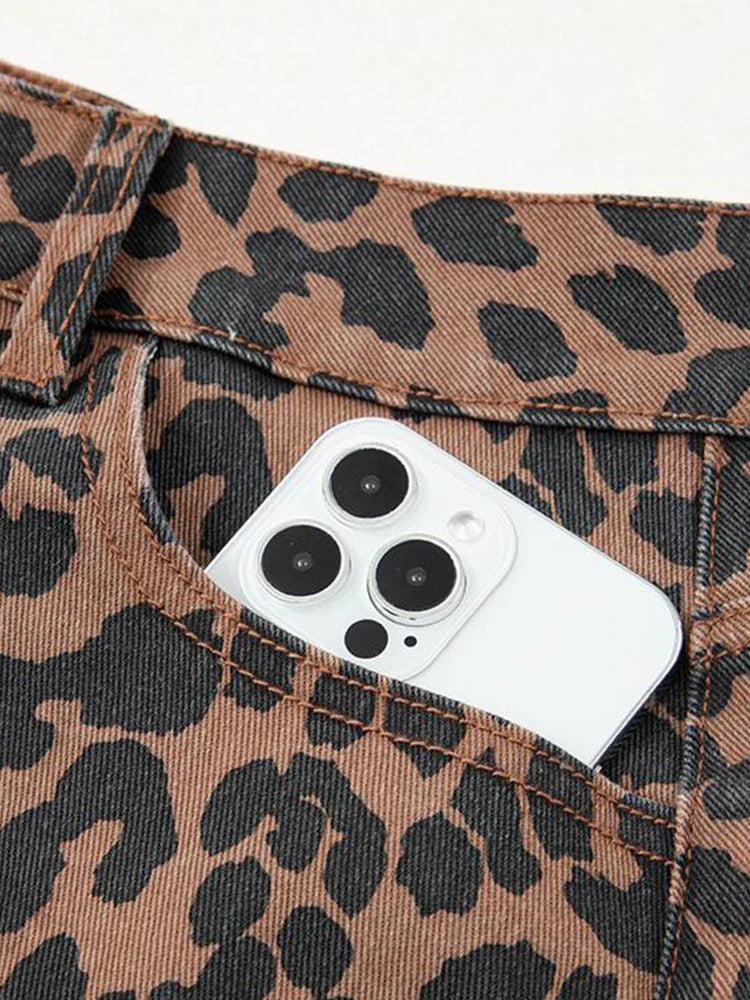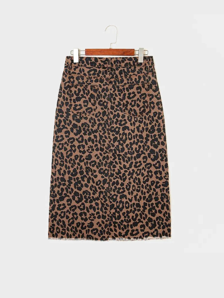 Unleash your wild side with this fierce and fashionable high-waisted denim skirt. Featuring the timeless allure of leopard print, this skirt is designed to make a statement. The flattering high-waist cinches your figure, while the functional side slit adds a touch of allure and ease of movement. Crafted from comfortable denim, it's the perfect piece to elevate your wardrobe, effortlessly pairing with everything from simple tees to sleek tops for a confident, trend-setting look.