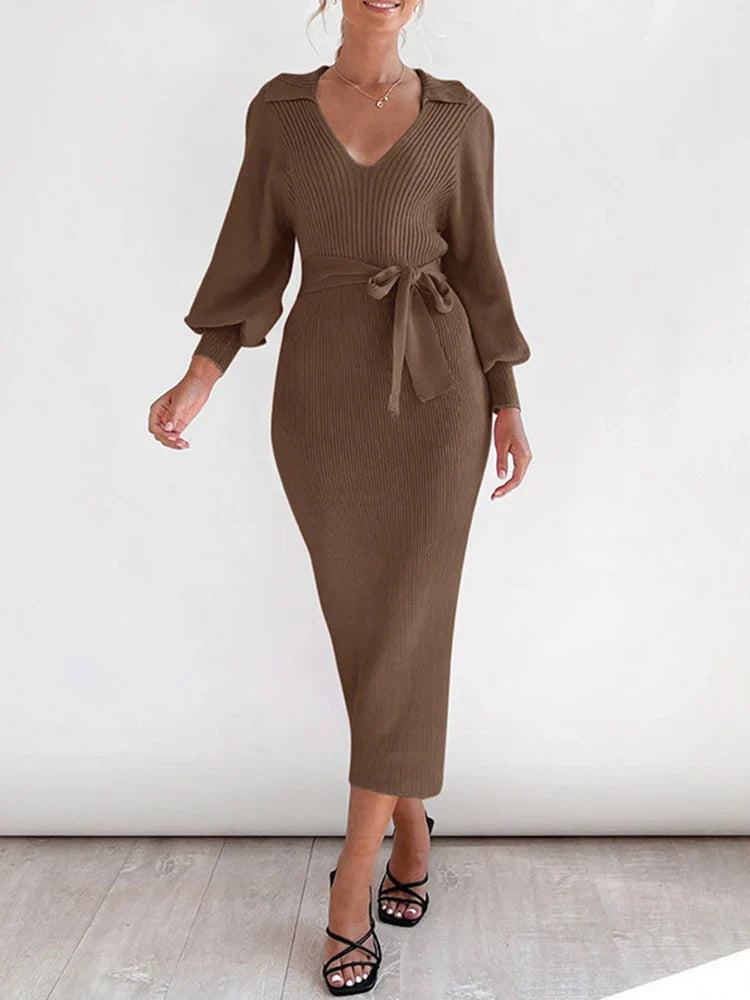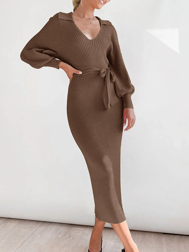 Womens Knit V Neck Tunic Long Sleeve Fall Sweater Dresses