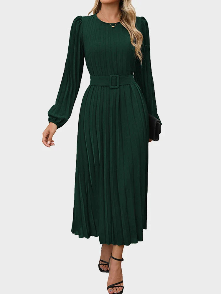 Womens Pleated A Line Flowy Long Sleeve Fall Dress