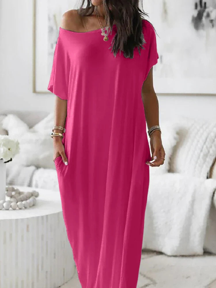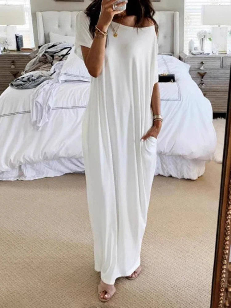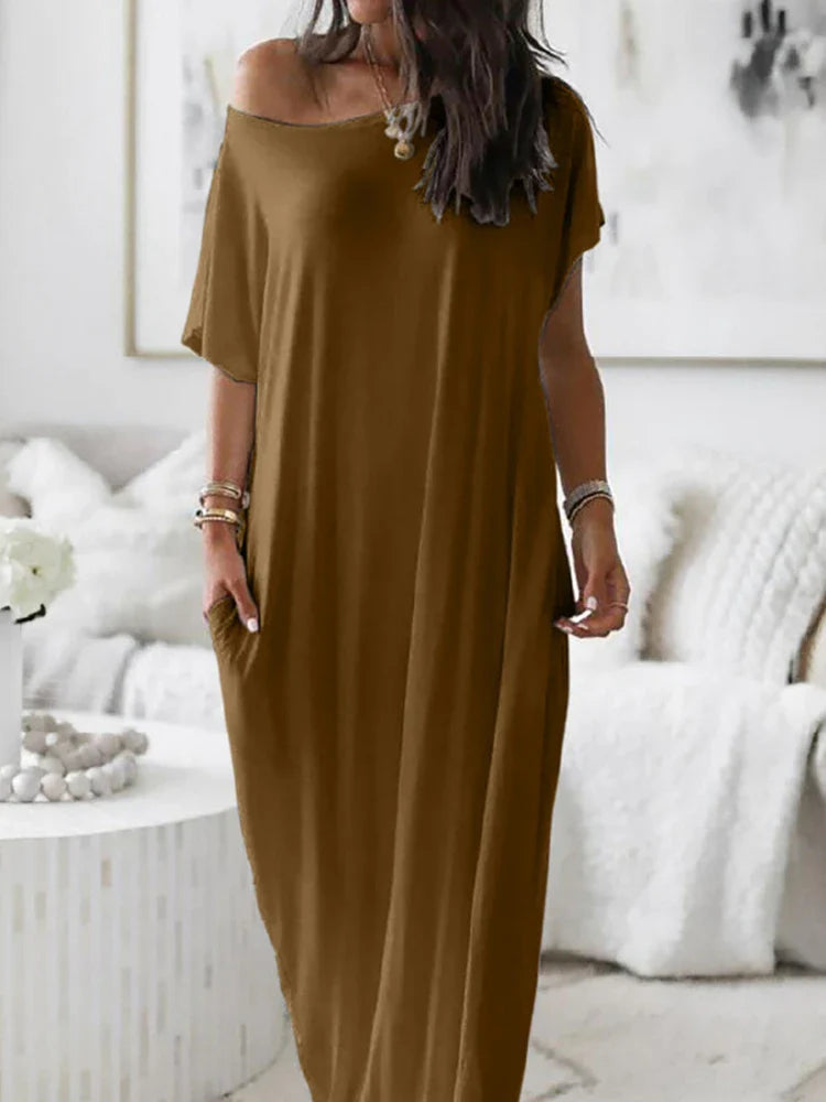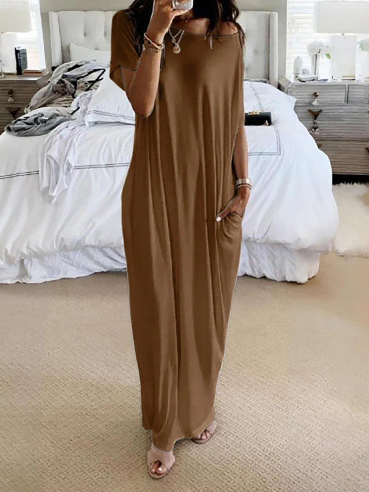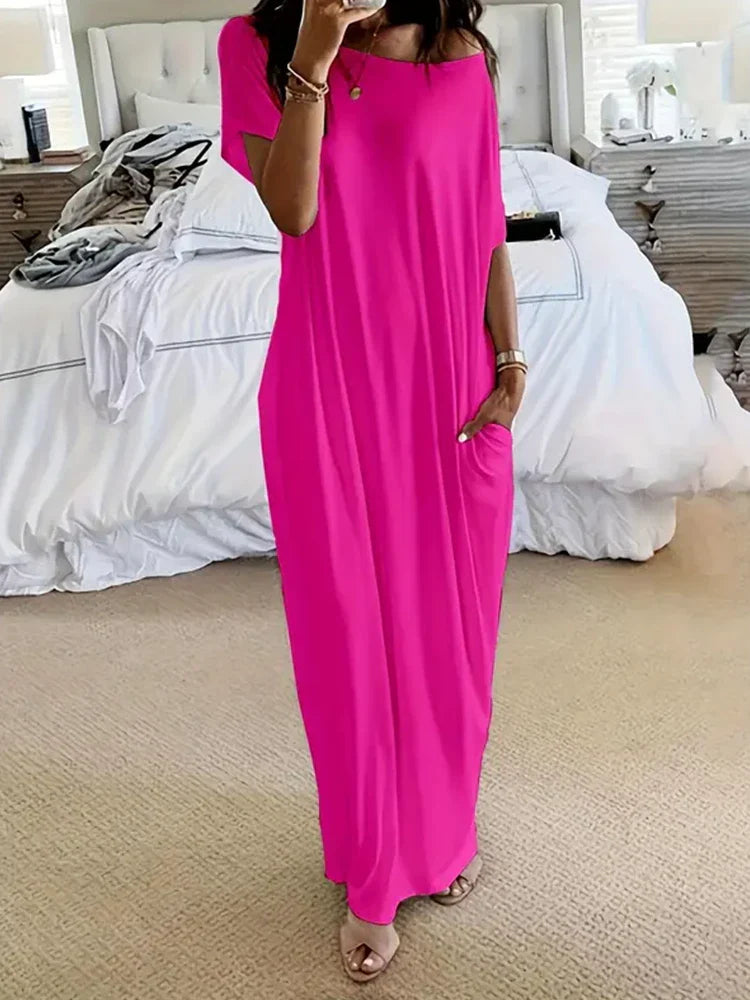 Women's Solid Color Batwing Sleeve Lounge Dress