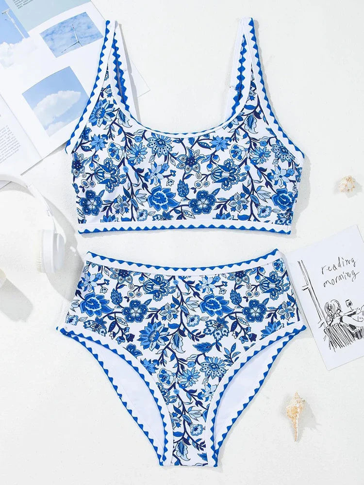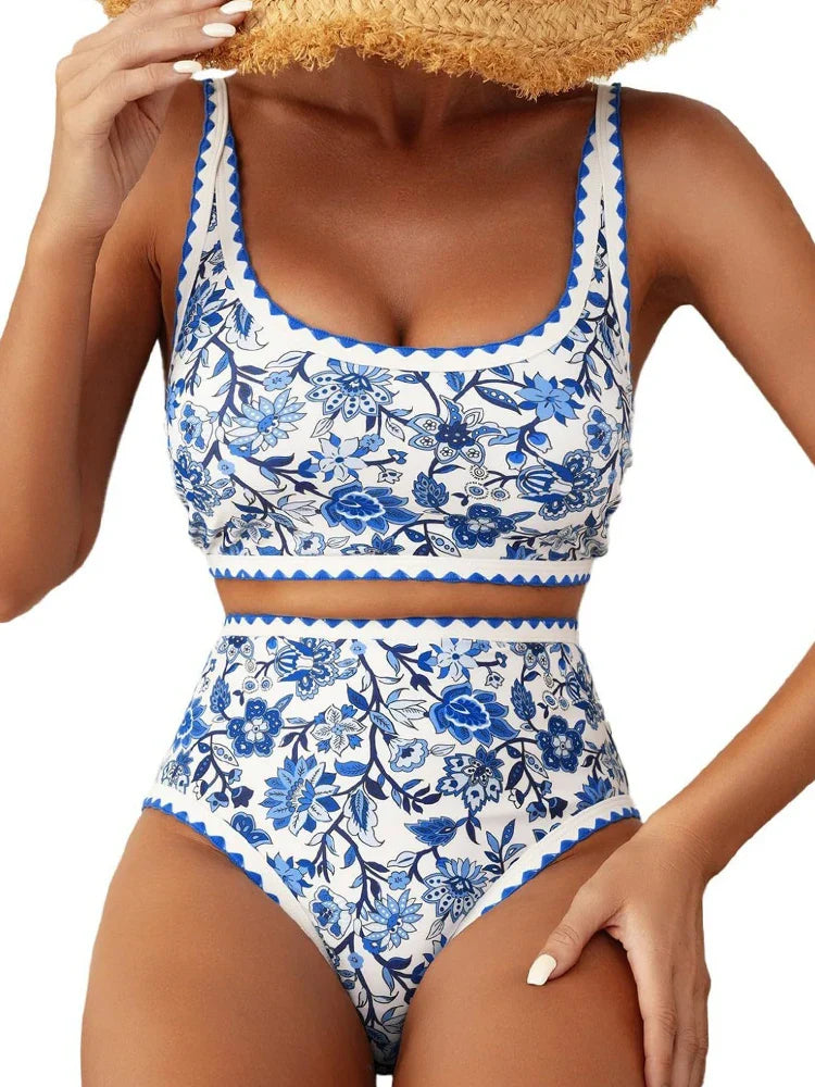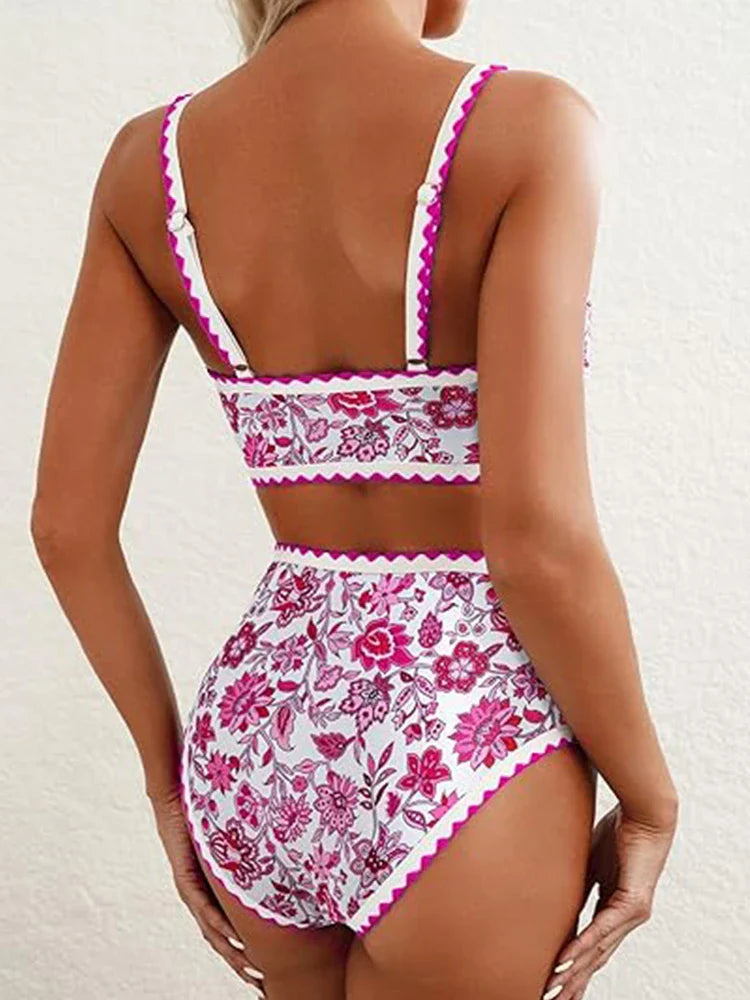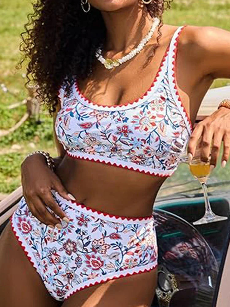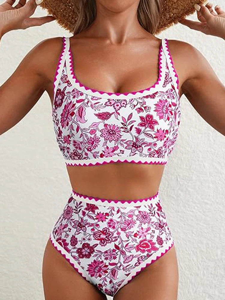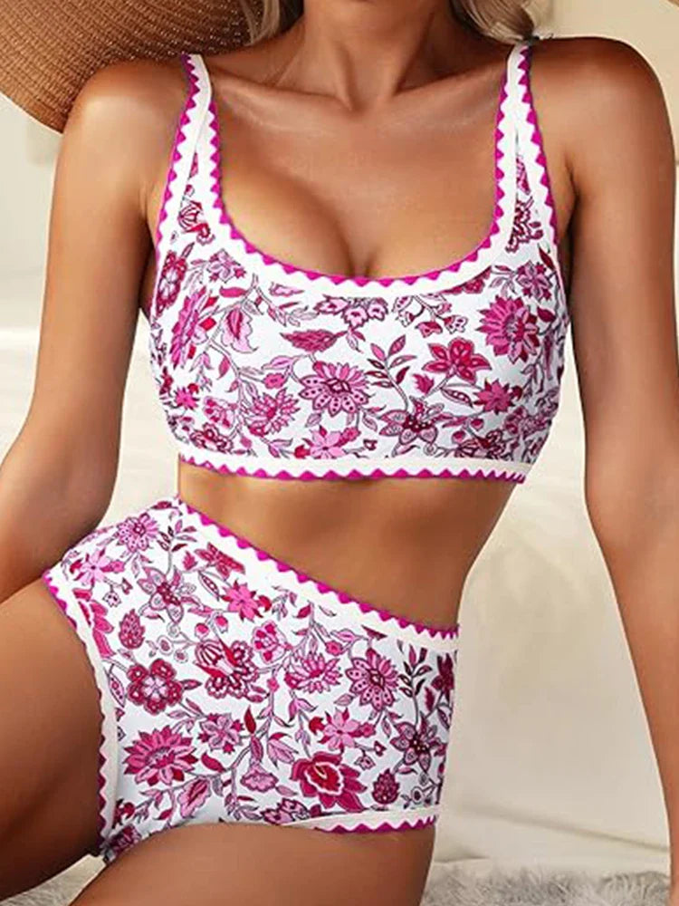 Women's Floral Print Whip Stitch 2 Piece Swimsuits